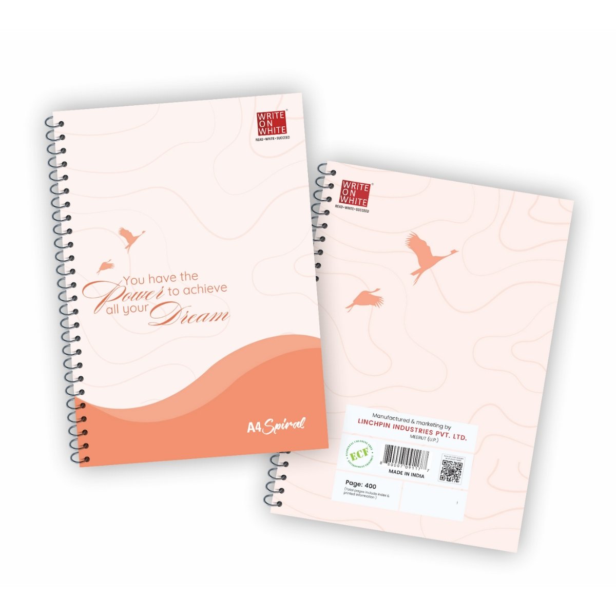 A4 Spiral Longbook Orange Colour Spiral Design from Write On White fuses eye-catching cover art with premium 70 GSM natural shade paper. With a soft matte laminated cover and sturdy binding, it’s perfect for notes, doodles, and daily inspiration. Ideal for students, creatives, and journaling enthusiasts. Category: A4 Spiral Longbooks.